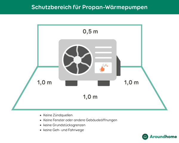 Schutzbereiche: Bei propanhaltigen Wärmepumpen müssen die von den Herstellern ausgewiesenen Schutzbereiche eingehalten werden.