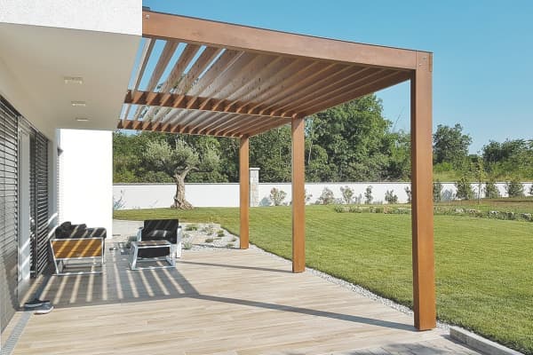 Lamellen sind schmale, horizontal verlaufende Platten, die Licht und Luft durchlassen können. Sie werden nicht nur als Lamellendach genutzt, sondern können auch als seitlicher Sichtschutz dienen. Dabei gibt es zwei Optionen: Wählen Sie eine Terrassenüberdachung mit einem Sichtschutz aus Lamellen, der verstellbar ist, bestehen die Lamellen meist aus Aluminium. Ein Terrassensichtschutz aus Holz hat dagegen oft feste Lamellen, die nicht geschlossen werden können.